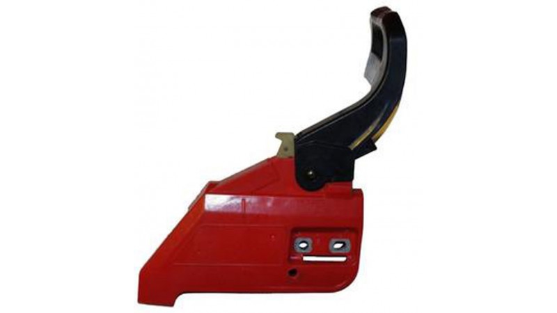 Закрывает вращающиеся части инструмента, тем самым защищая пильщика от возможных повреждений. Обеспечивает натяжение цепи при помощи двух винтов и фиксации шины гайками.