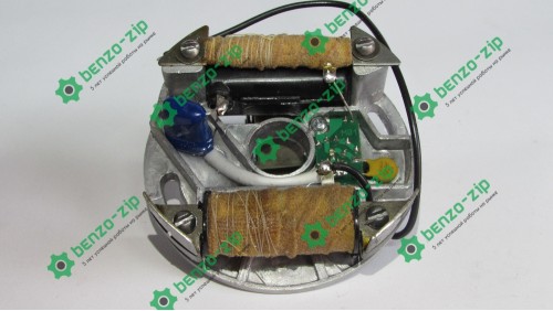Зажигание запускает в работу двигателей бензопил. Оно создает электрический импульс, который поступает на свечу. Та генерирует разряд, от которого воспламеняется топливо. Оно, воспламеняясь, проворачивает цилиндропоршневую группу, а вместе с ней и коленчатый вал.
